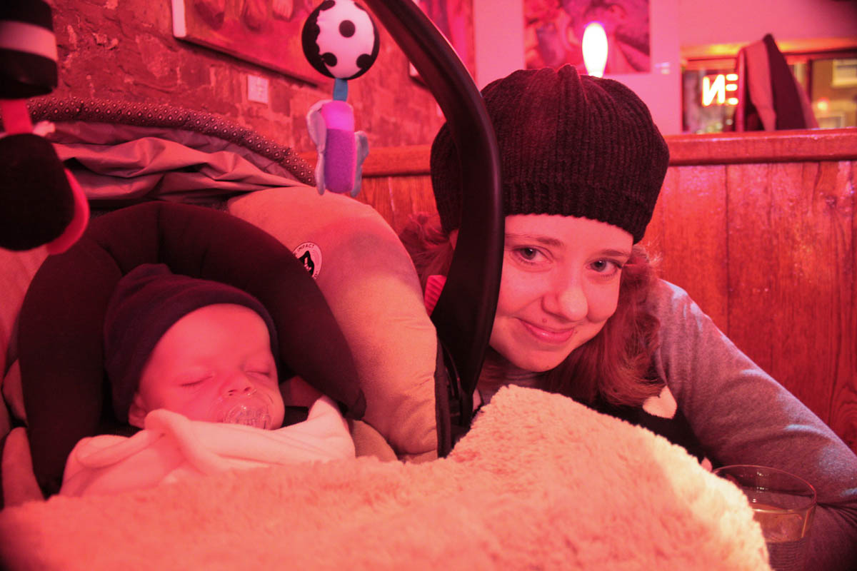 Momma and you are bathed in the reddish lights at the Chicago Diner. It’s her favorite restaurant and you’ve been here twice now. It was payday, so we decided to surprise mommy with a treat. Our waiter, Jeff, has a brand new baby boy too, so he generously gave us a free desert!