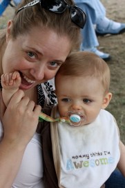 Mommy and you wave to the camera.