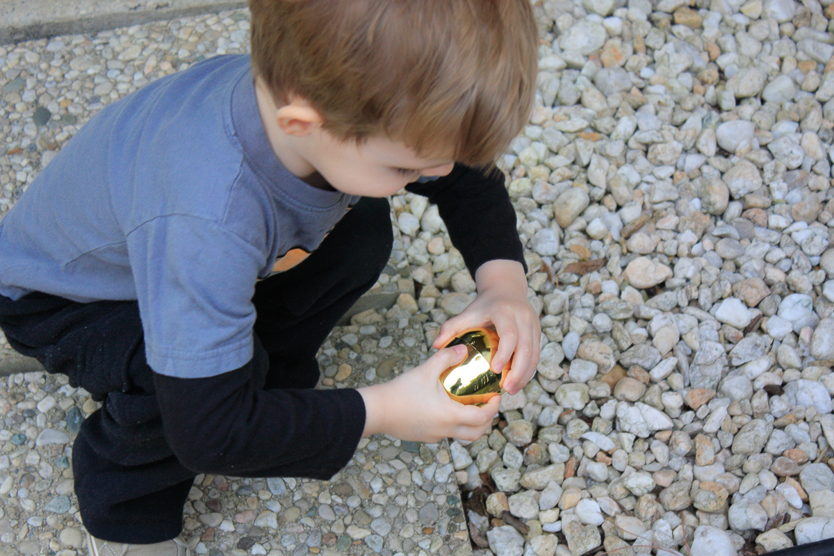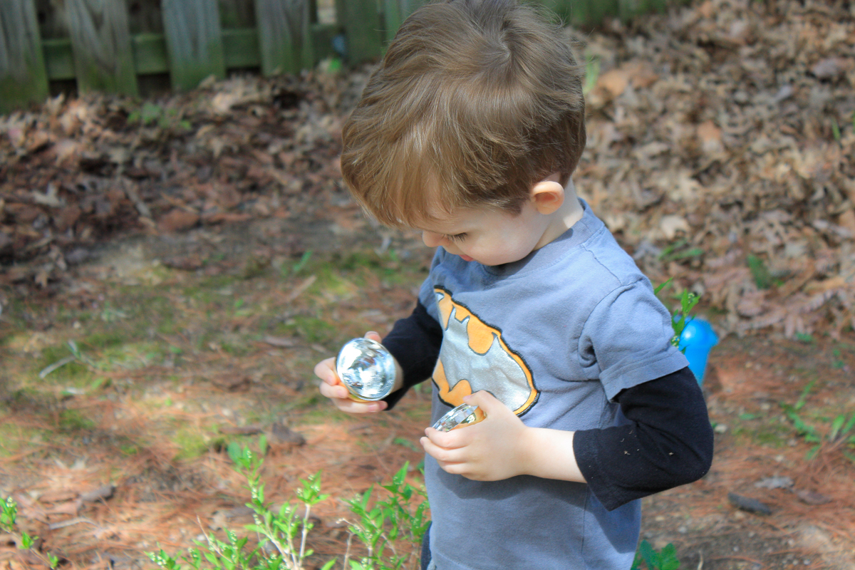 Then you went downstairs to look on Daddy’s phone to see the Easter Bunny Tracker. When we finally found that he was already here, Mommy called us out into the yard where you tracked down all the Easter eggs. Apparently, the Easter bunny leaves money in the gold ones.