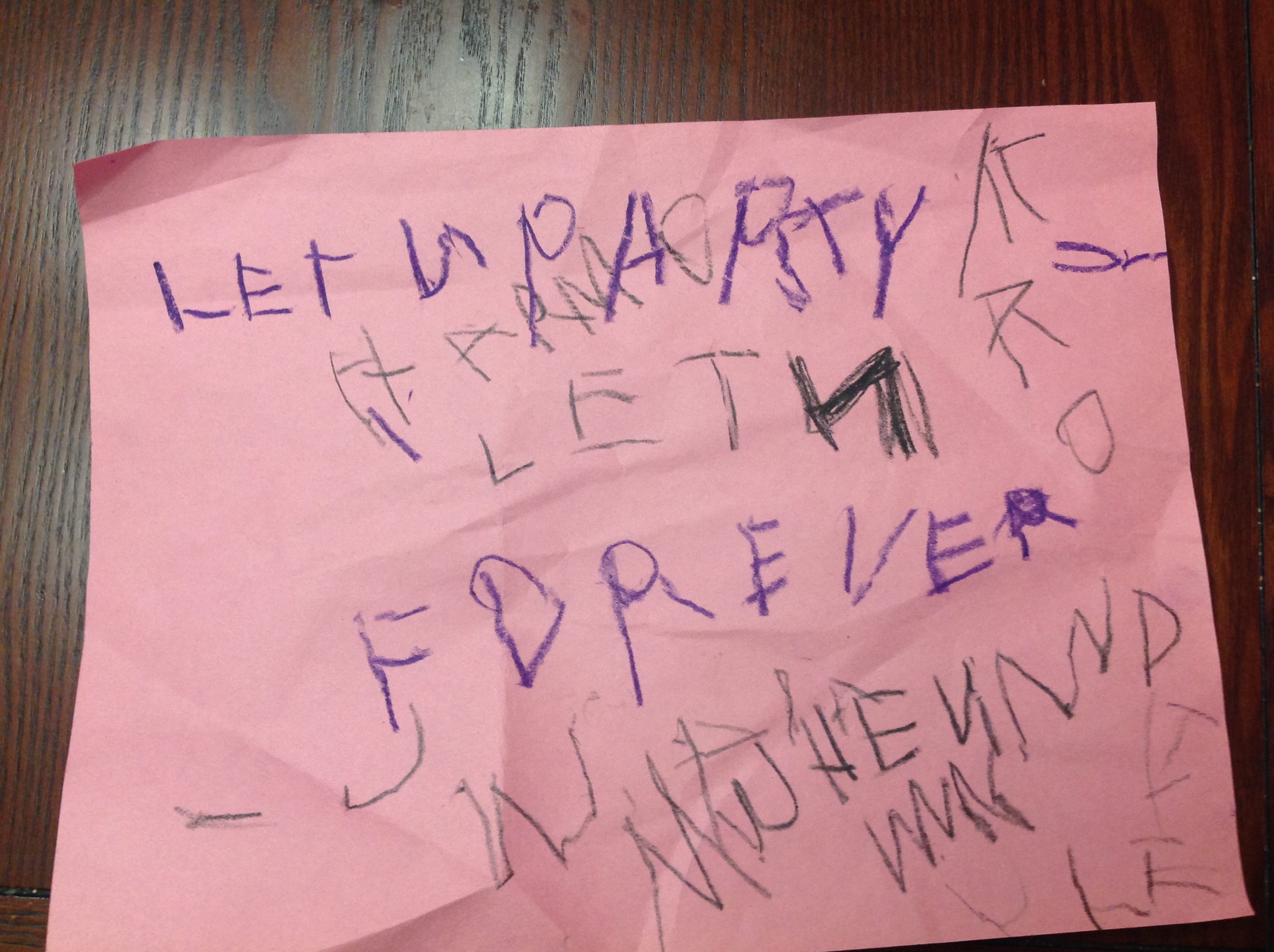 The BIGGEST accomplishment in the last few weeks is your ability to write. You wrote “I love you” very clearly on Daddy’s Fathers Day card, you often write the words “Wheel of Fortune” and your latest things this week were “Ever(y)thing is awesome” and “Party forever” because you’ve found and profoundly enjoy the LEGO MOVIE.