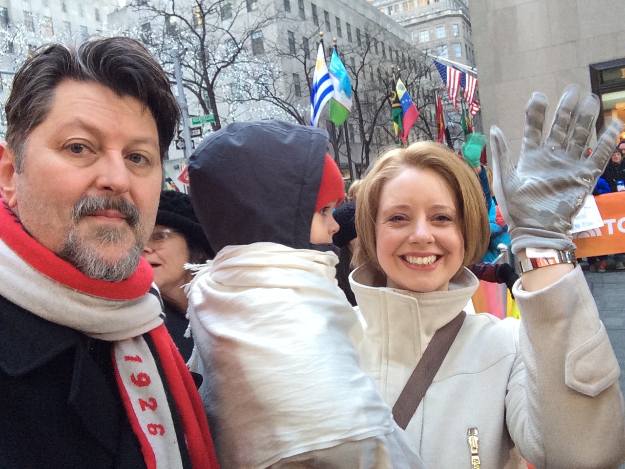 But the trip wouldn’t have been complete if you didn’t get to go to the Today show to see your favorite puppy in the world, WRANGLER! It was very exciting when they walked Wrangler outside and you got to sneak over and see him personally! (It was almost as exciting for daddy who got to glimpse and briefly chat with some of the Mad Men cast members). Before we made the long drive home, we had one final meal with Uncle Chad and Aunt Am.