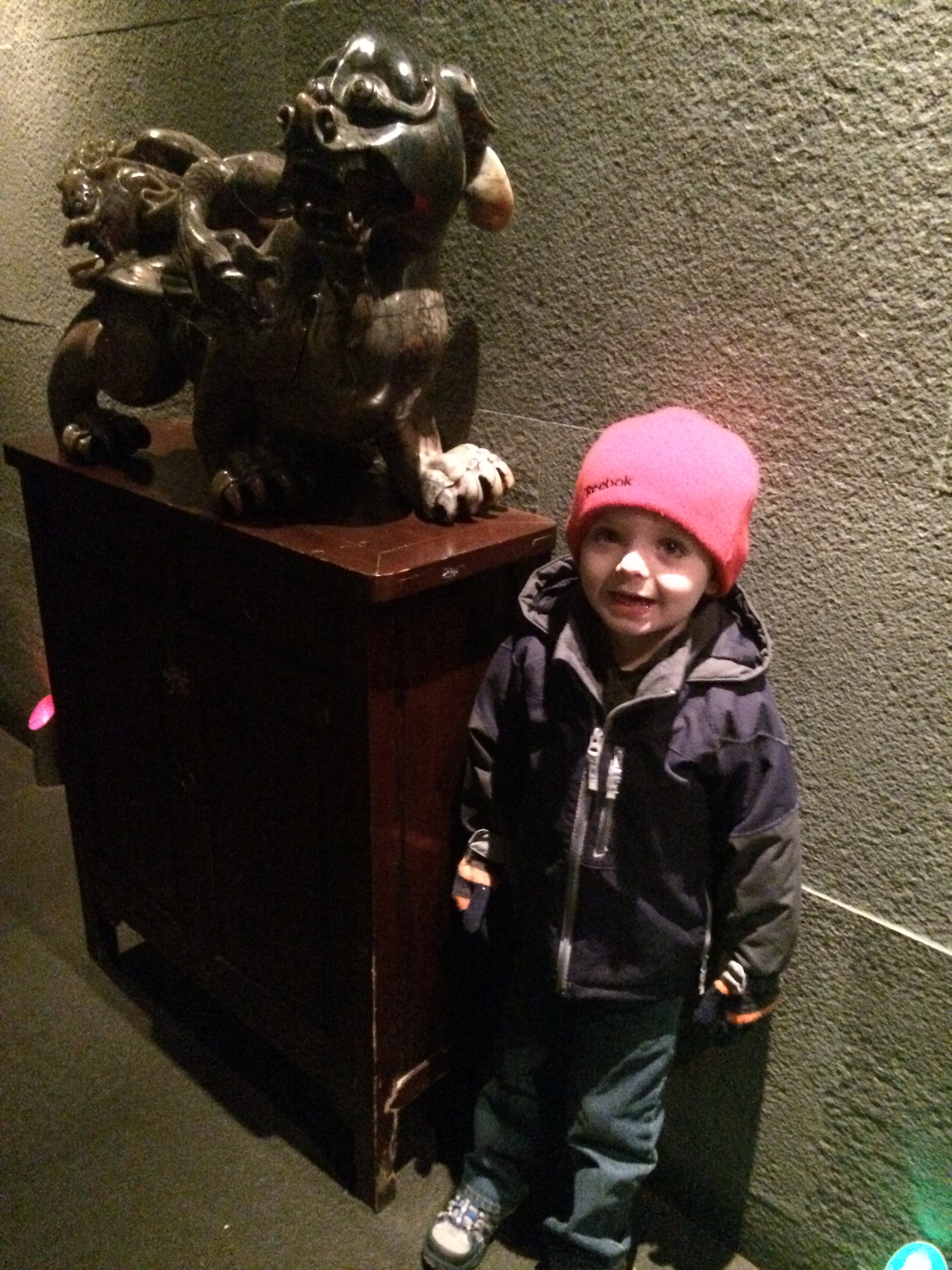 The most fun thing was traveling to New York together (even though we had to drive through a snow storm) and surprising Uncle Chad on his birthday. You got to see Uncle Todd, Mimi and Doc too. Even though it was about your uncle, you had a great time making “BIG” fun at FAO Schwarz. We got you an “official” muppet (which you named B-Dads), visited M&Ms World (one of your favorite places), The Disney store, rode the ferris wheel at Toys R Us and you used some money Mimi and Doc gave you to buy your very own dinosaur. We also took mommy to a fancy vegan restaurant (Candle 79). While daddy was at work, you and mom visited the Gugenheim which took great pleasure in pronouncing it the “Gooooooooooo Gunheim.”