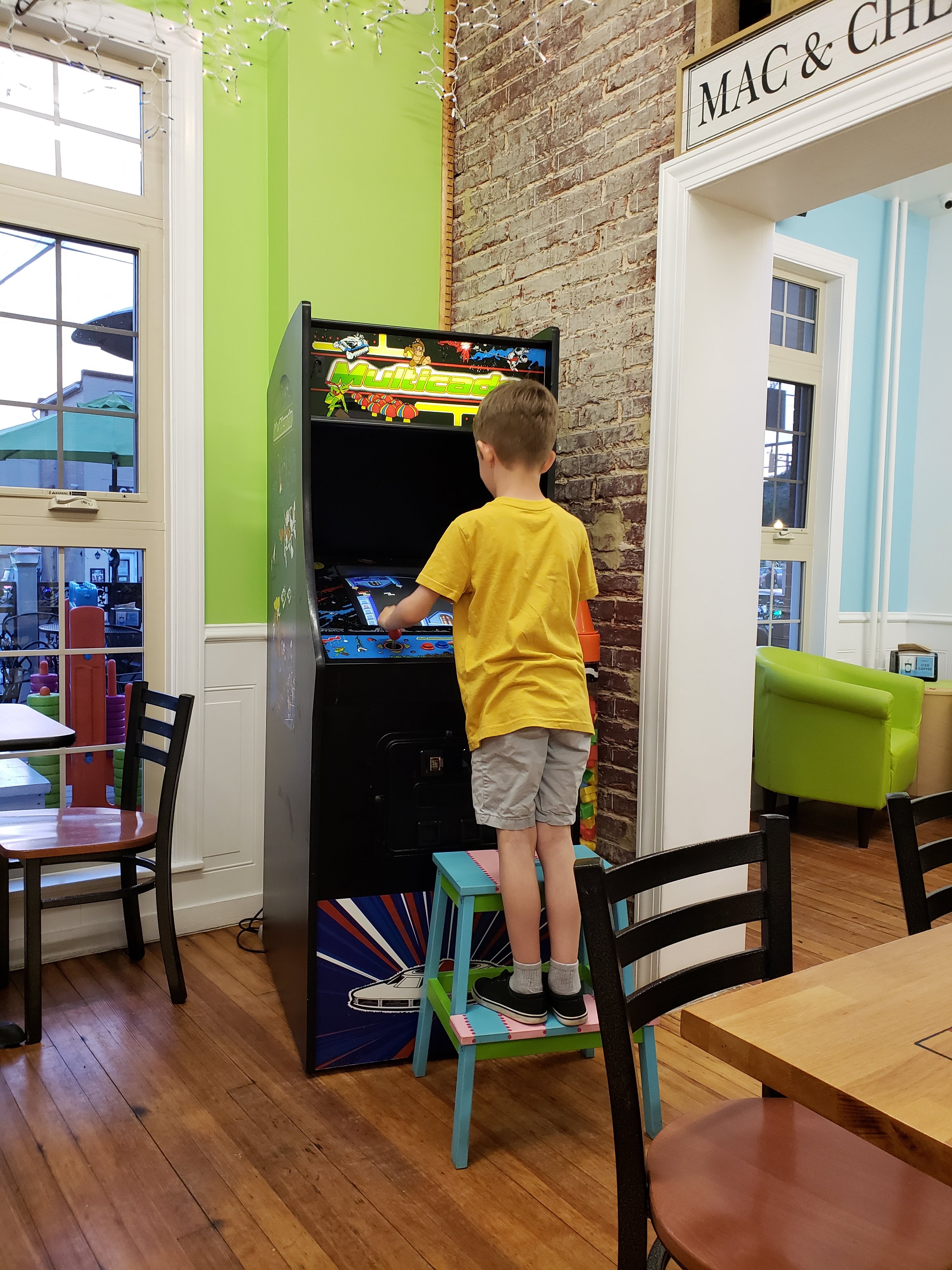 On the way home, we stopped for a couple of nights in the Hotel Roanoke. Roanoke, Virginia was a little smaller than we expected, but the highlight of the trip was the Pinball Museum. It was your first exposure to it and you REALLY thought it was fun. Another fun thing was a rest stop that allowed visitors to play a guitar while there. Mommy picked it up and strummed a view bars.