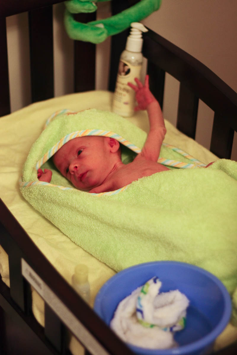A low glucose level and small birth weight (5 lbs, 3 oz) meant you needed to be monitored for a bit in the NICU at Advocate Illinois Masonic hospital. You also had a touch of jaundice (as many babies do), so they bathed you in a blue light until you were fully done. As I told mommy, they had to sweeten you up a bit more before we could take you home.