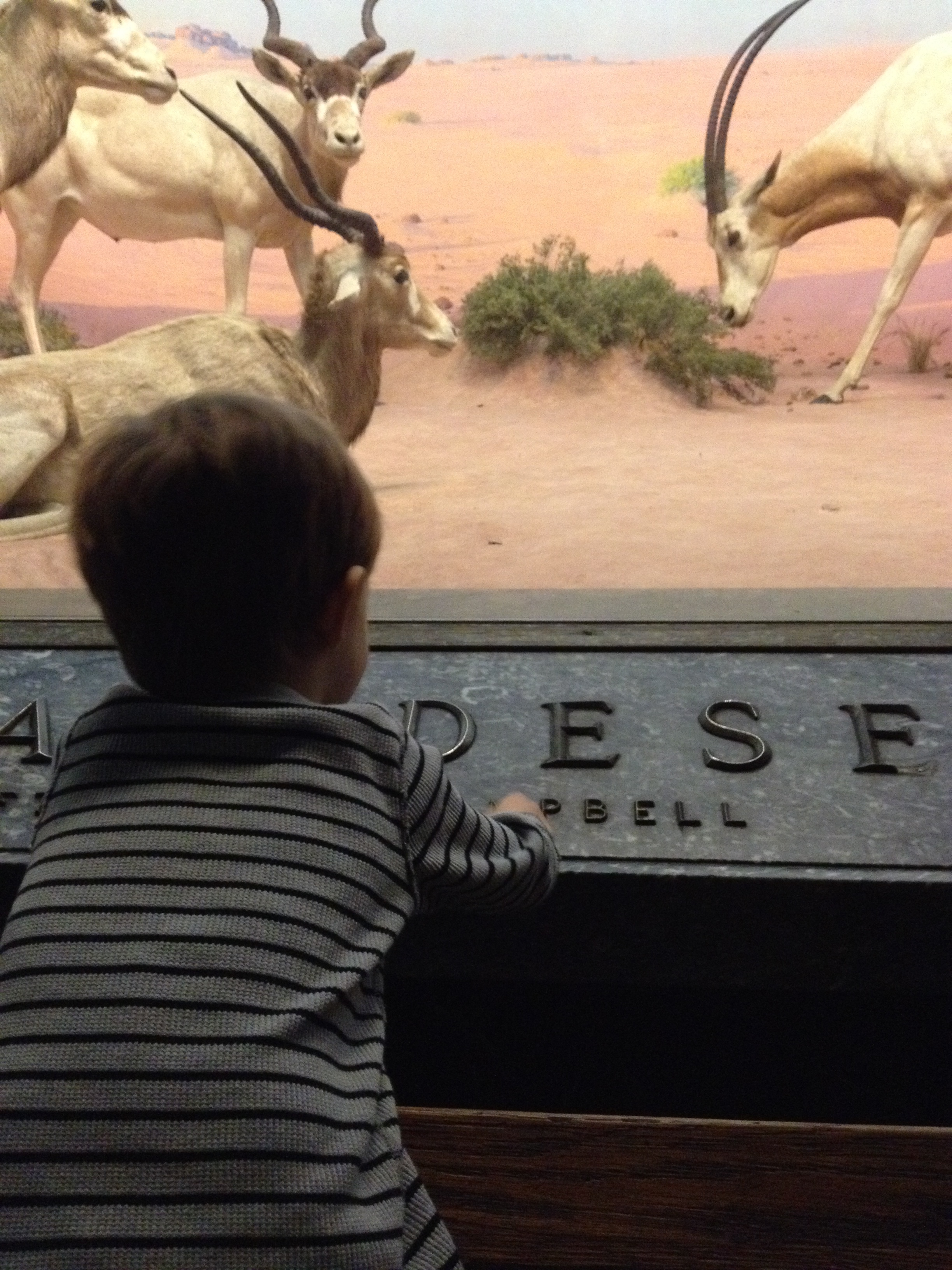 The day before we went back, we squeezed in ONE more tiny adventure at the American Museum of Natural History. While it was crowded, we had a great time and you got to see Rose Space Center (where you learned about craters on the moon), the African Mammals room and we ate a quick lunch before running off to the train station. The trip home was not so bad, since you slept on Grandma most of the way. Before your grandparents left, we drove through the Symphony of Lights display (our second time, actually) where you pointed out the snowball throwing bears which you enjoyed BOTH times.