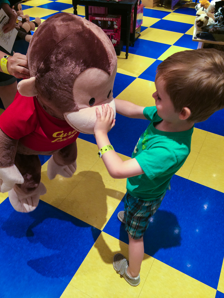 Once we were there you were amazed. We saw lots of toys and you even picked out a bear you wanted Santa to bring to you (a little “Wall Street” bear) and you even re-enacted a famous scene from the movie, BIG. You were just about ready for a nap, so we took a break. But when you woke up, it was all adventure again. We went to the M&Ms store followed by a trip to the Disney store where you were enthralled by lanterns, you charmed the clerks out of several Monsters Inc. pins (especially, your favorite, Mike Wazowski) and Uncle Chad met us there to find some dinner.