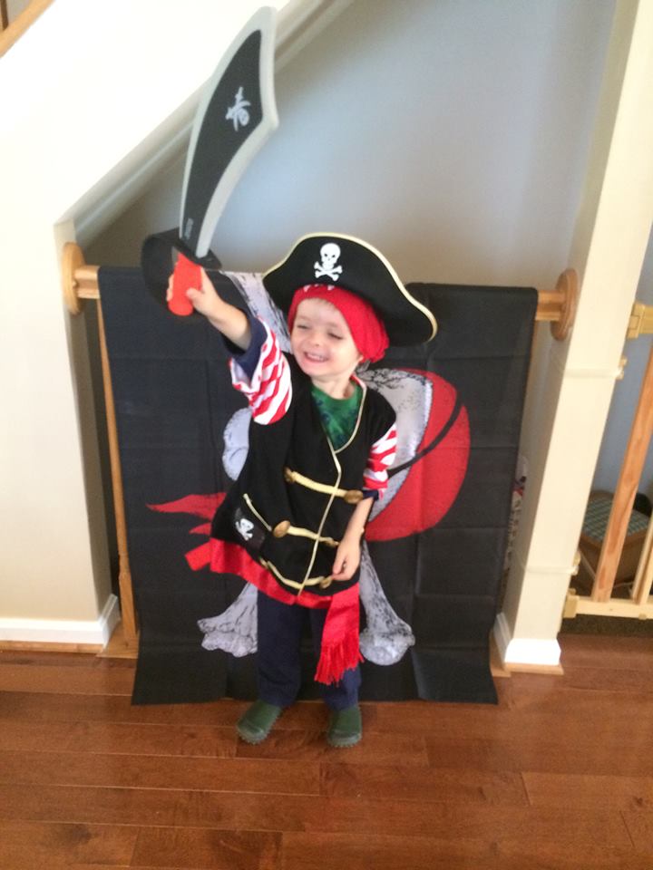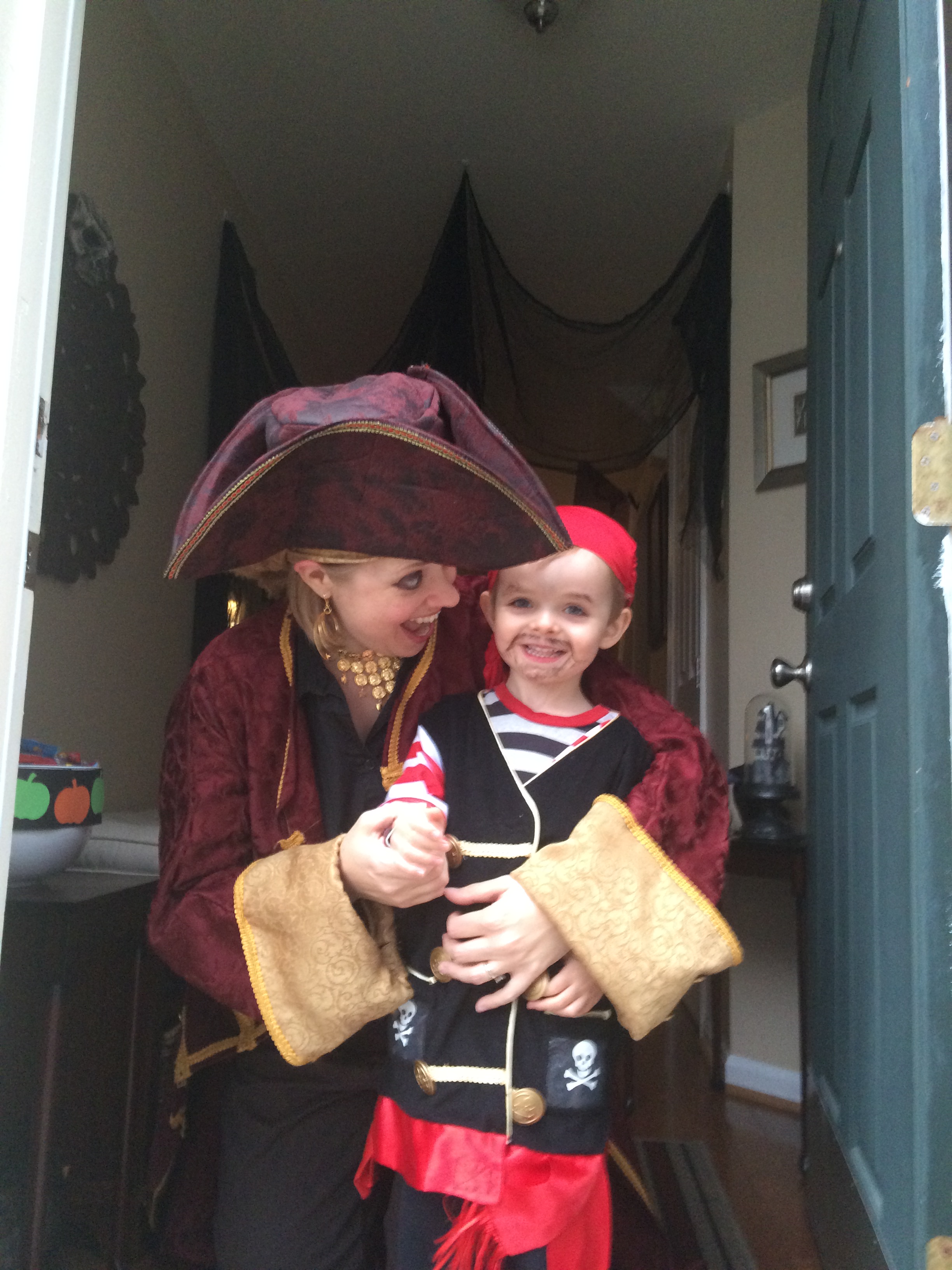 Where the whole family dressed as pirates, you begged to have a pirate beard and then you and mommy caused some mayhem in the neighborhood. Mommy said you could hear daddy yelling “Avast!” to the ghoulies all the way across the parking lot. You visited lots of houses and came back exhausted. But we’re guessing you’ll keep your energy up by eating candy through the rest of November. 🙂