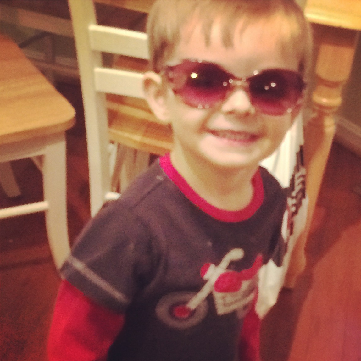 One other thing… you’re mom bought you a guitar this month so you’d stop messing with hers. (Though you have made off with her sunglasses in these pictures). Now you think you’re a rock star. You just might be right?