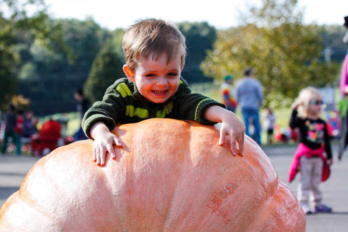 From there, we took a few weekends of home improvement, a quiet little visit to Ellicot City and an awesome weekend of apple picking at Larriland Farms (where you discovered hay piles for the first time). Larriland Farms was fun for daddy, since you and mommy had already gone on a field trip with your class there. In addition to throwing hay on every inch of your clothing, you discovered giant pumpkins and had apple fritters for the first time.
