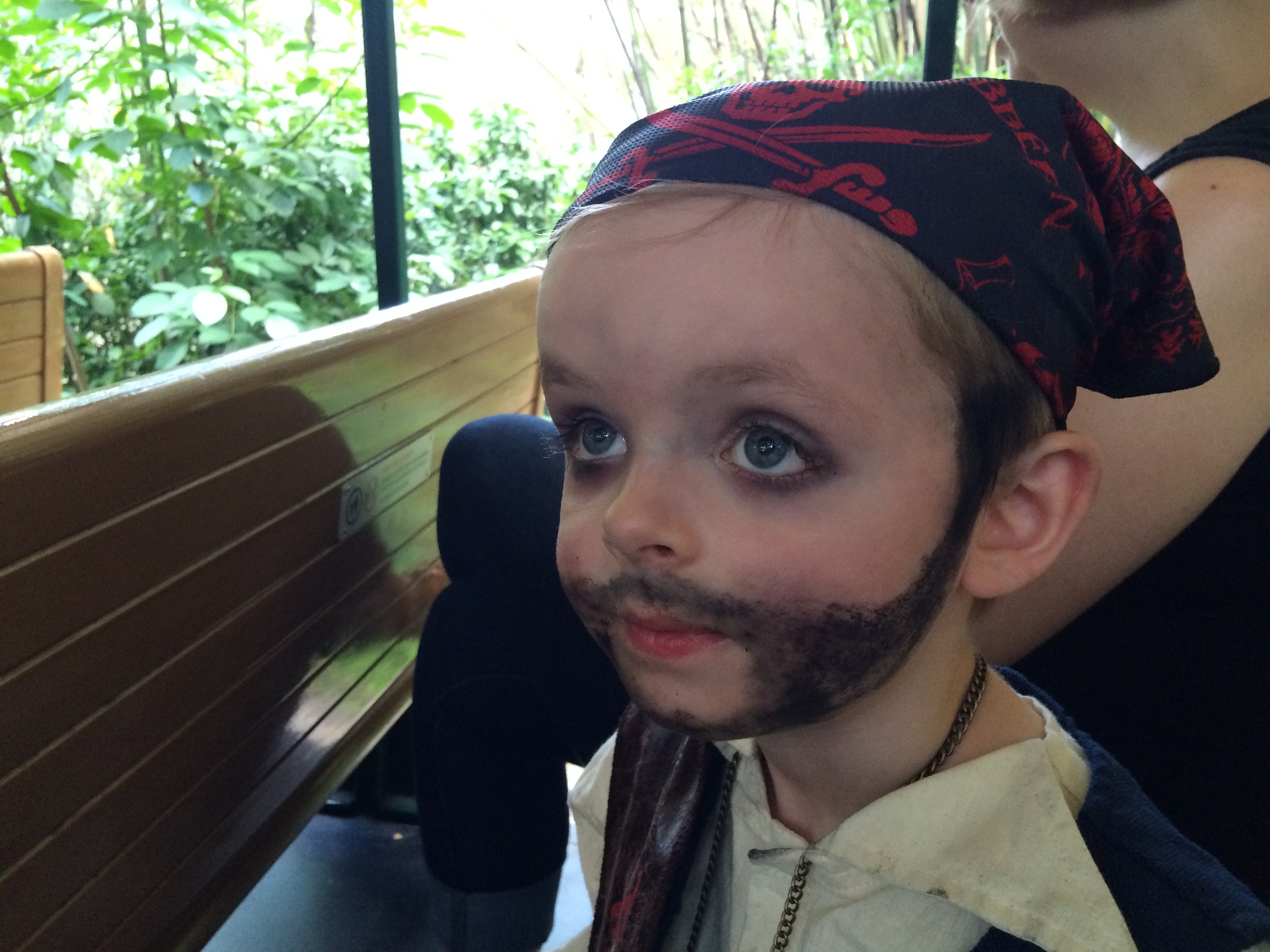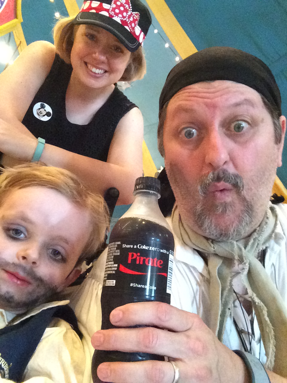 About this “beard thing”. Is it mandatory for pirates?Not so Dumbo, catching a cool ride in THIS heat.Cake… pop…Not impressed as you are Dad.Why YES, I do answer to Rapscallion.So much to see… can’t take it all in.Small World? Looks pretty big to me.AND THEN… THERE WAS THE WHOOSH… and the UP and the DOWN and the…Ooooh. This situation looks GRAVE mommy. Get it?