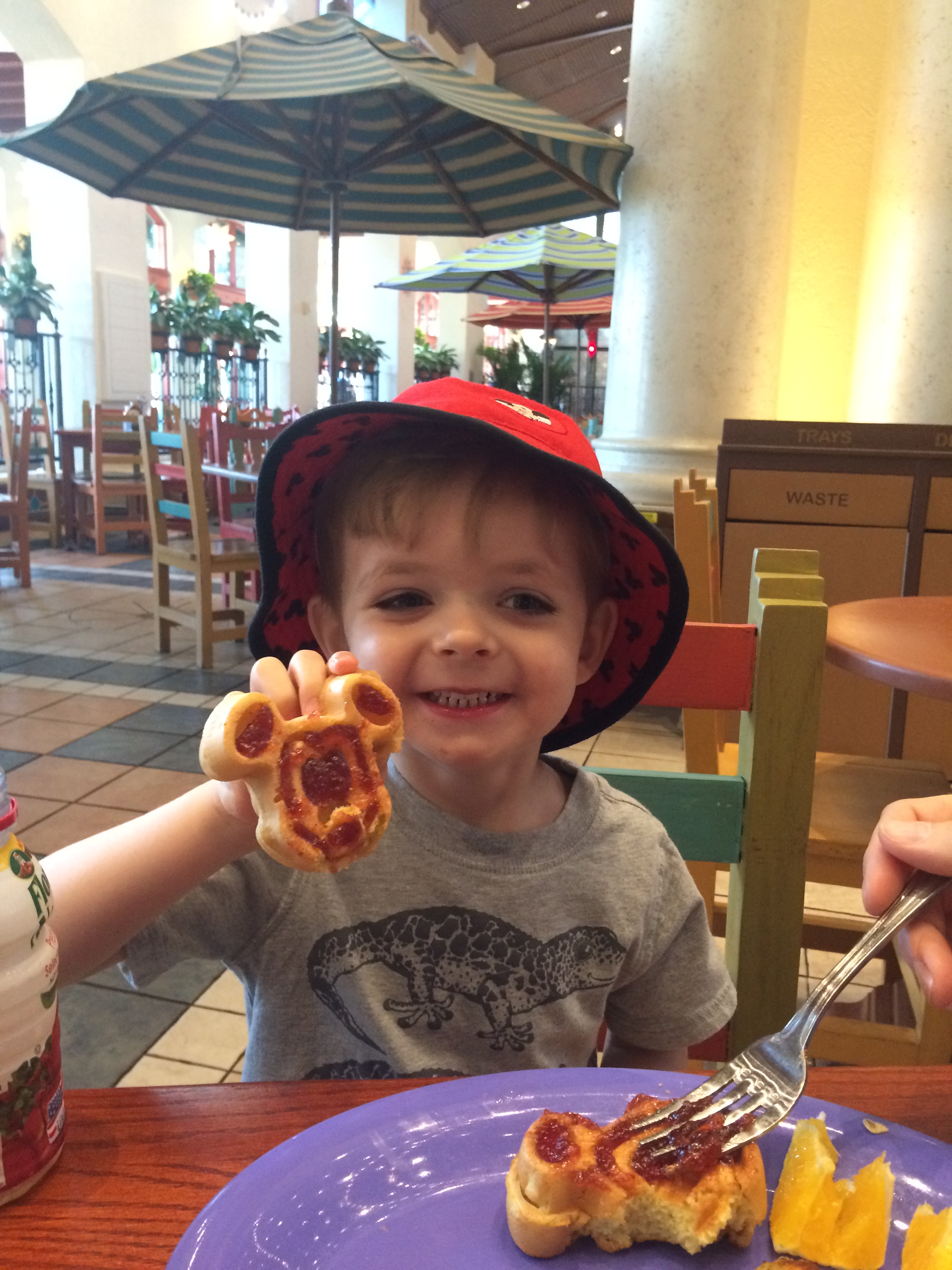 We began on a Friday, flying to Orlando via Atlanta. As usual, you were pretty great on the plane, but layovers always make you a bit cranky. We brought your drawing pad and soon you were reminding us that “Disney Jr. It’s where the magic begins…”. Even though we got to the resort late (this year we did Coronado Springs), you were excited and remembered “Gus the safe bus driver” videos more than you did the cartoons.