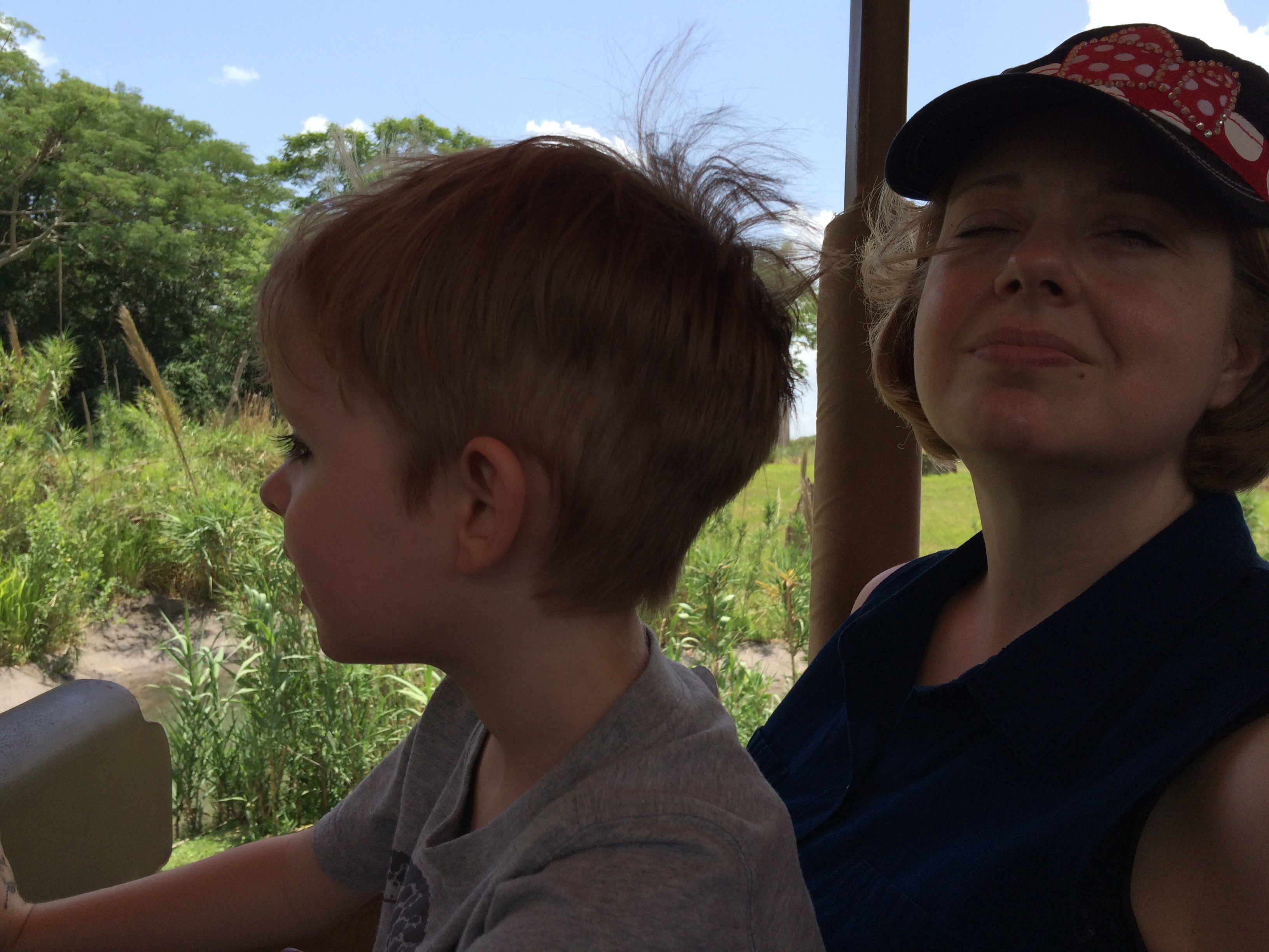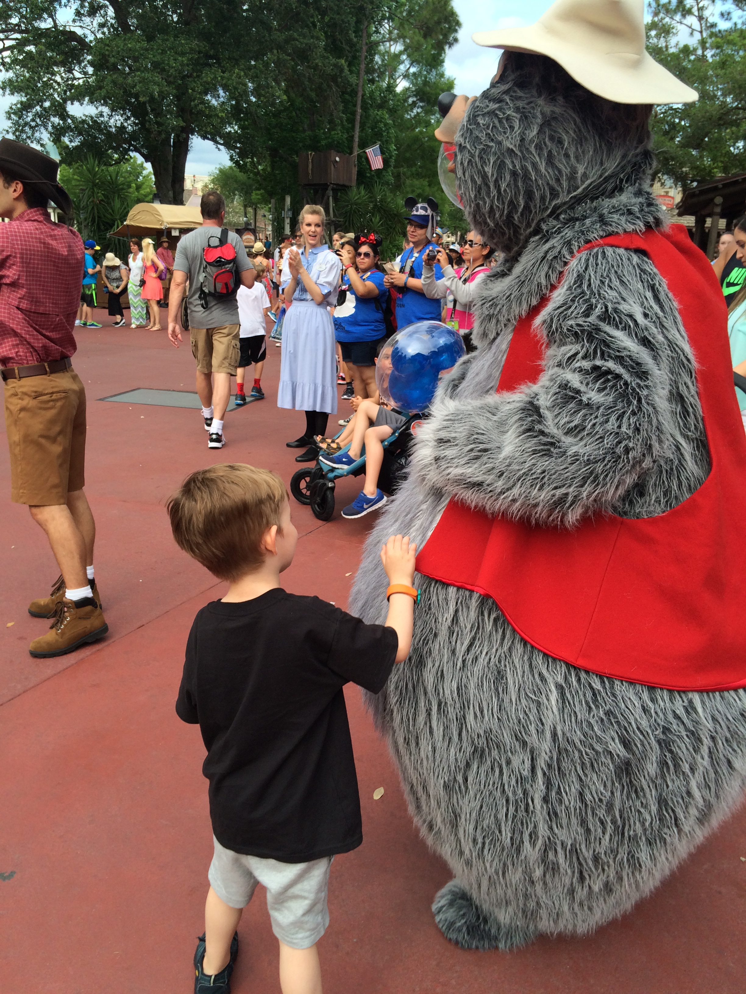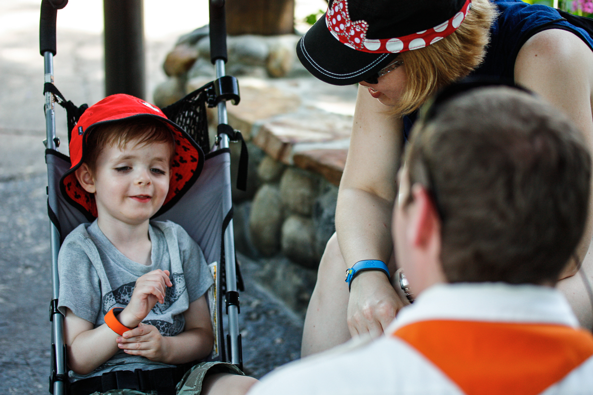 And this was Animal Kingdom Day. When we got there, because you couldn’t scan your magicband multiple times you had a bit of a fit. It was hard to get your attention until we went to Kilimanjaro. You weren’t allowed to ride the Expedition Everest, but the yeti images and colorful flags seemed to distract you well enough. And we finally got you interested in the Wilderness Explorer badges that were all over the park.
