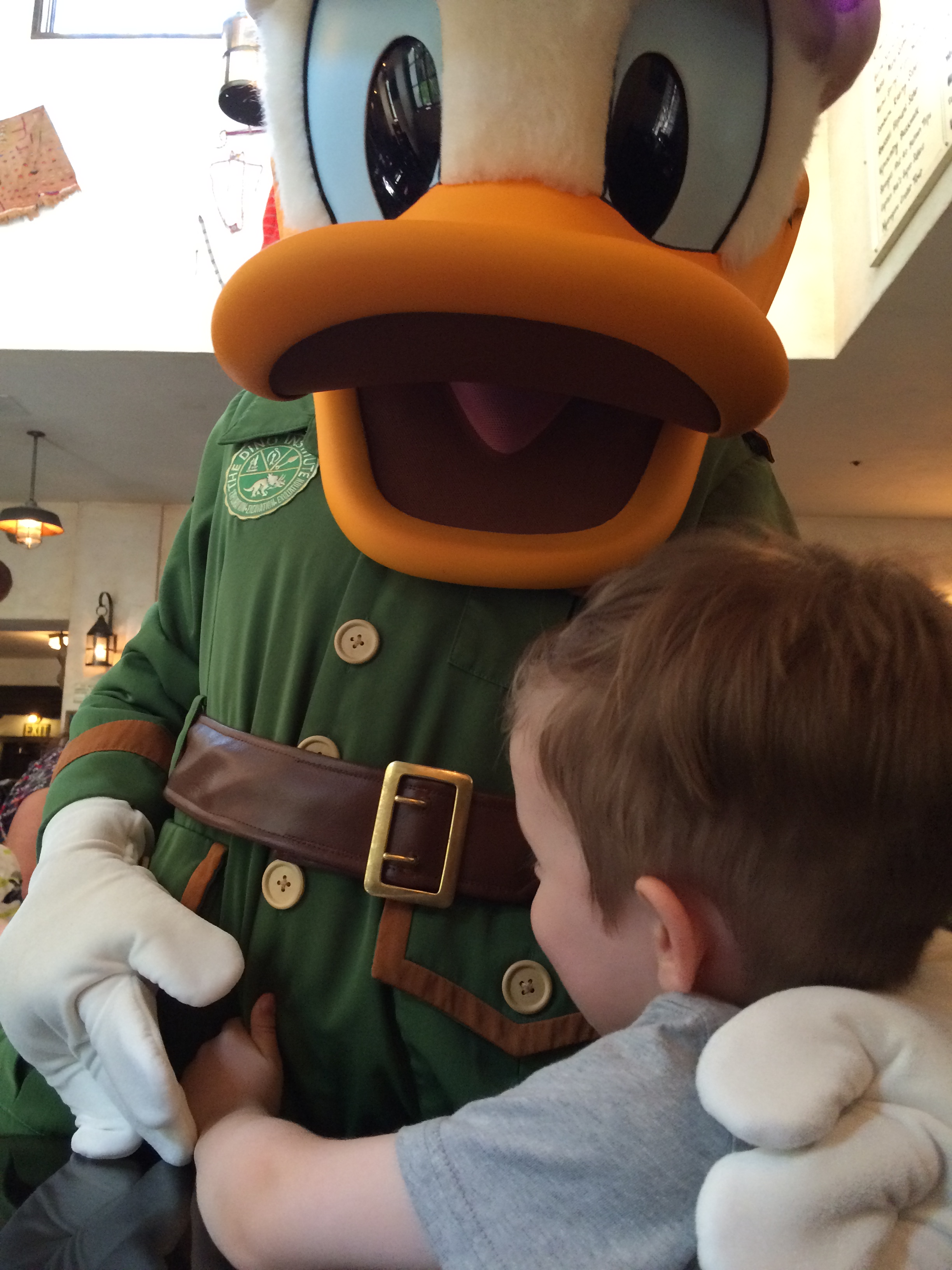 Daisy. My favorite female duck.Daisy. Mommy’s favorite Disney character.The star of the park!So are we INSIDE or OUTSIDE? (It was inside)MY DESSERT! ALL MINE!What’s with the safari hat, old man?