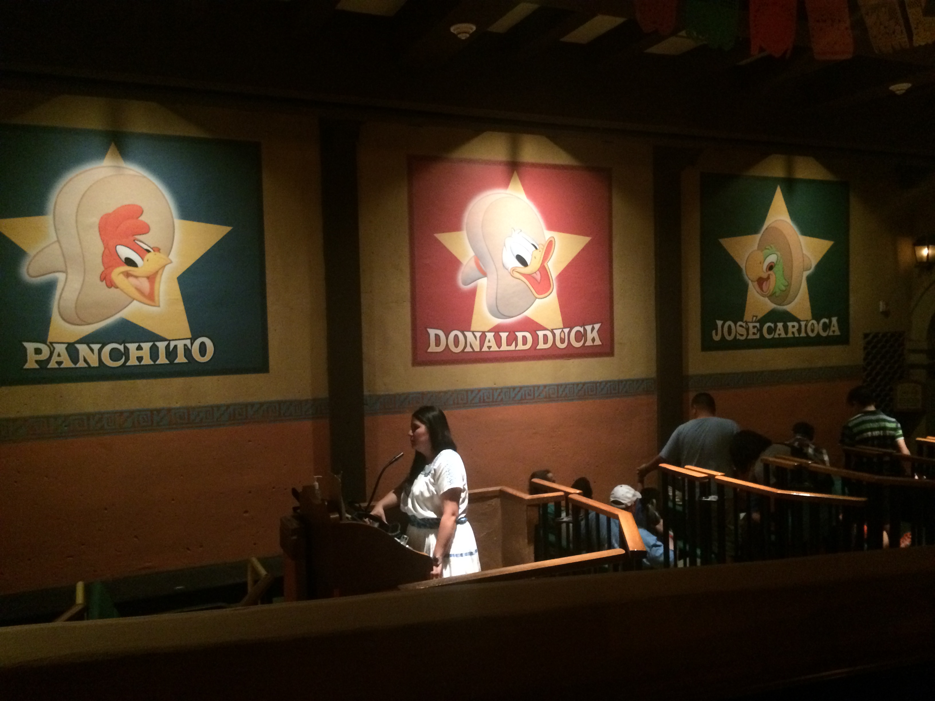 After a nap at the hotel, we returned later in the day to ride the Nemo ride and then go to the Coral Reef for dinner (not a good experience this year, unfortunately). Because it was late we had to hurry to see England, France and finally Mexico before the fireworks show. In England you got to see Pooh and Tigger again. In France you got to eat some really delicious ice cream. And then we rushed off to catch the Mexico ride so we could see our friends, The Three Caballeros.
