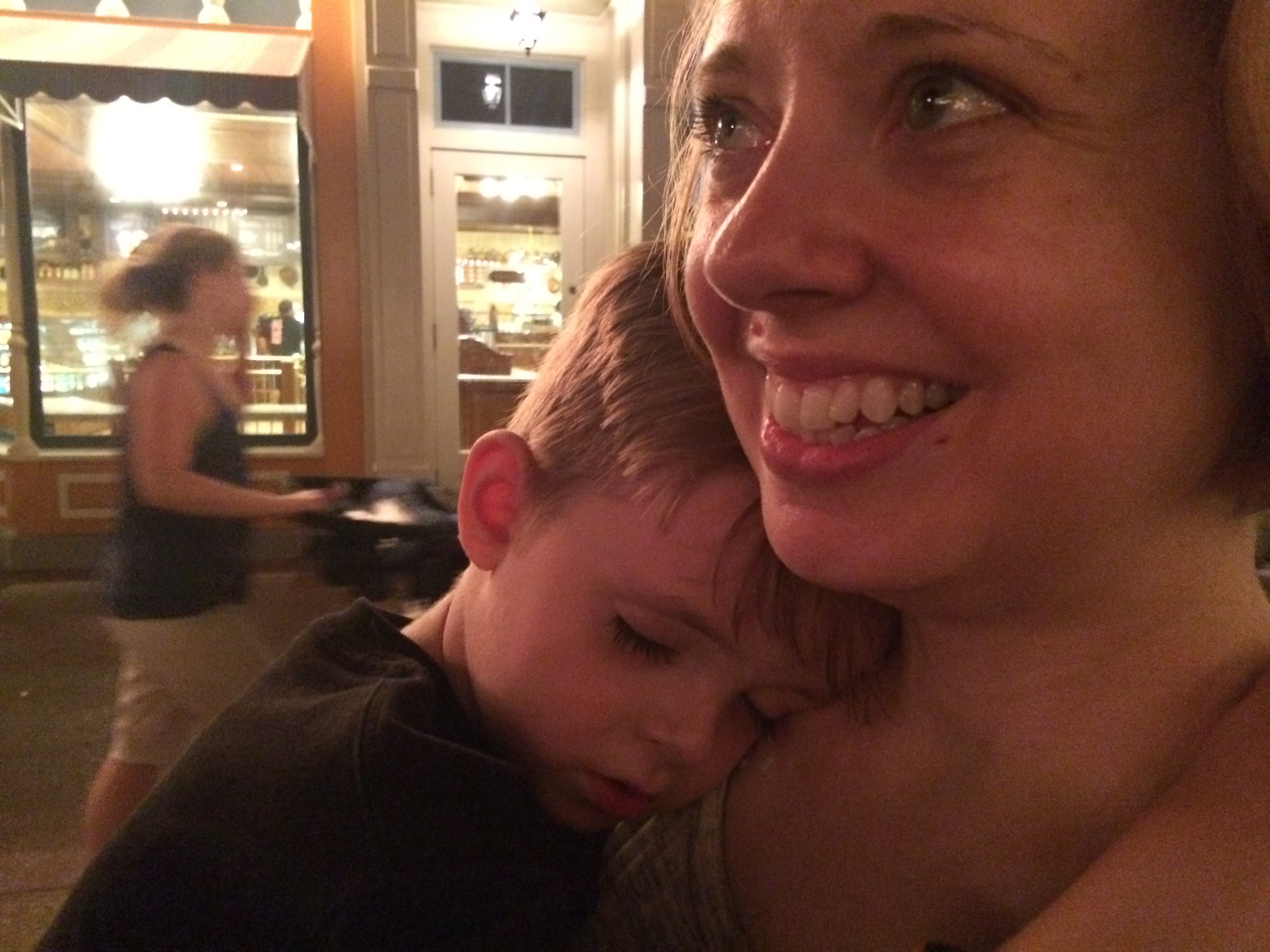 Because the park closed early, we took a round about bus ride to end up in Downtown Disney. You got to play with Legos, see the volcano at the Rainforest Cafe and we took a little snack break at Raglan Road. Another successful day and you even got to sleep with your Captain Mickey and Duffy Bear (which you picked out).