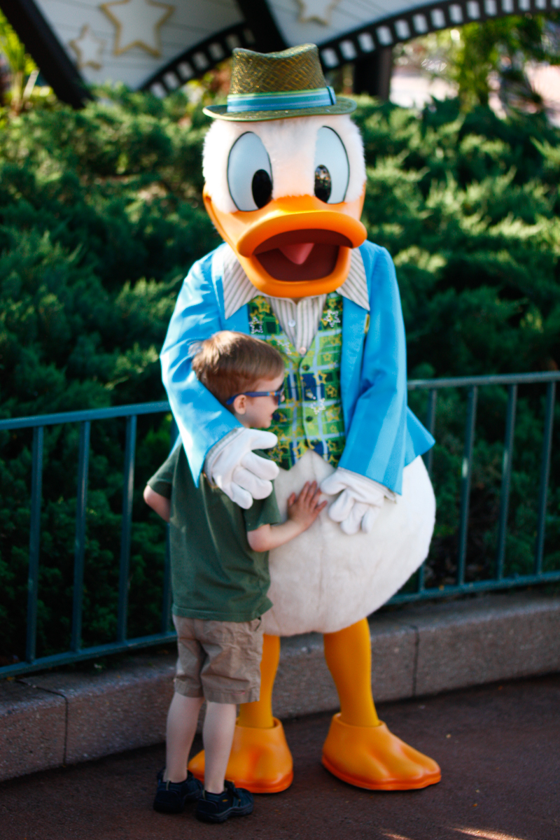 Our first day was an early one, but not a long one. We went to Disney Hollywood Studios. And we were worried, because the previous evening you’d had a meltdown when you were told you couldn’t ride the Tower of Terror with Mommy. (You had a hard time understanding that some rides are just too intense for little guys). However, upon entering the park we saw Donald and Daisy and things were much better.