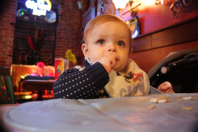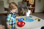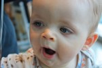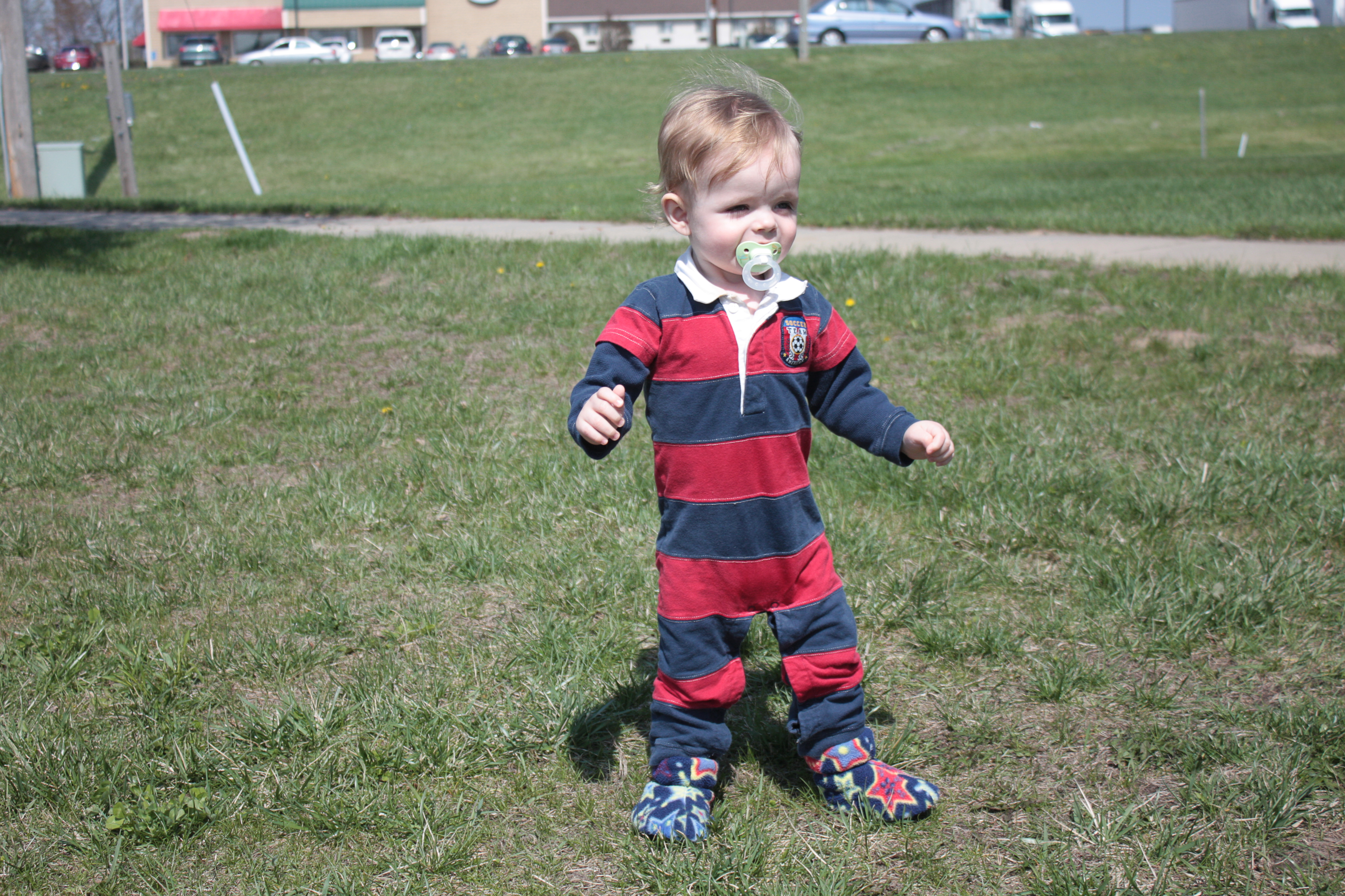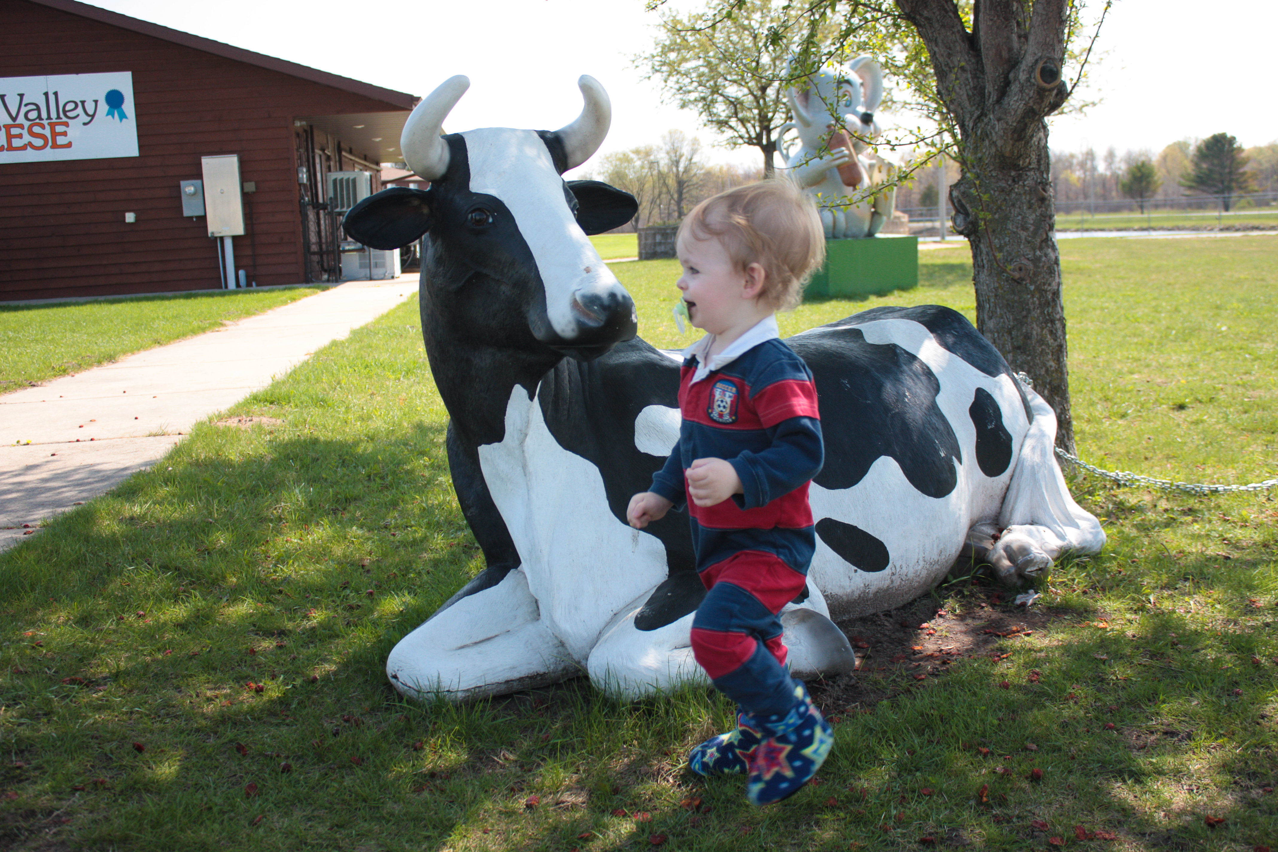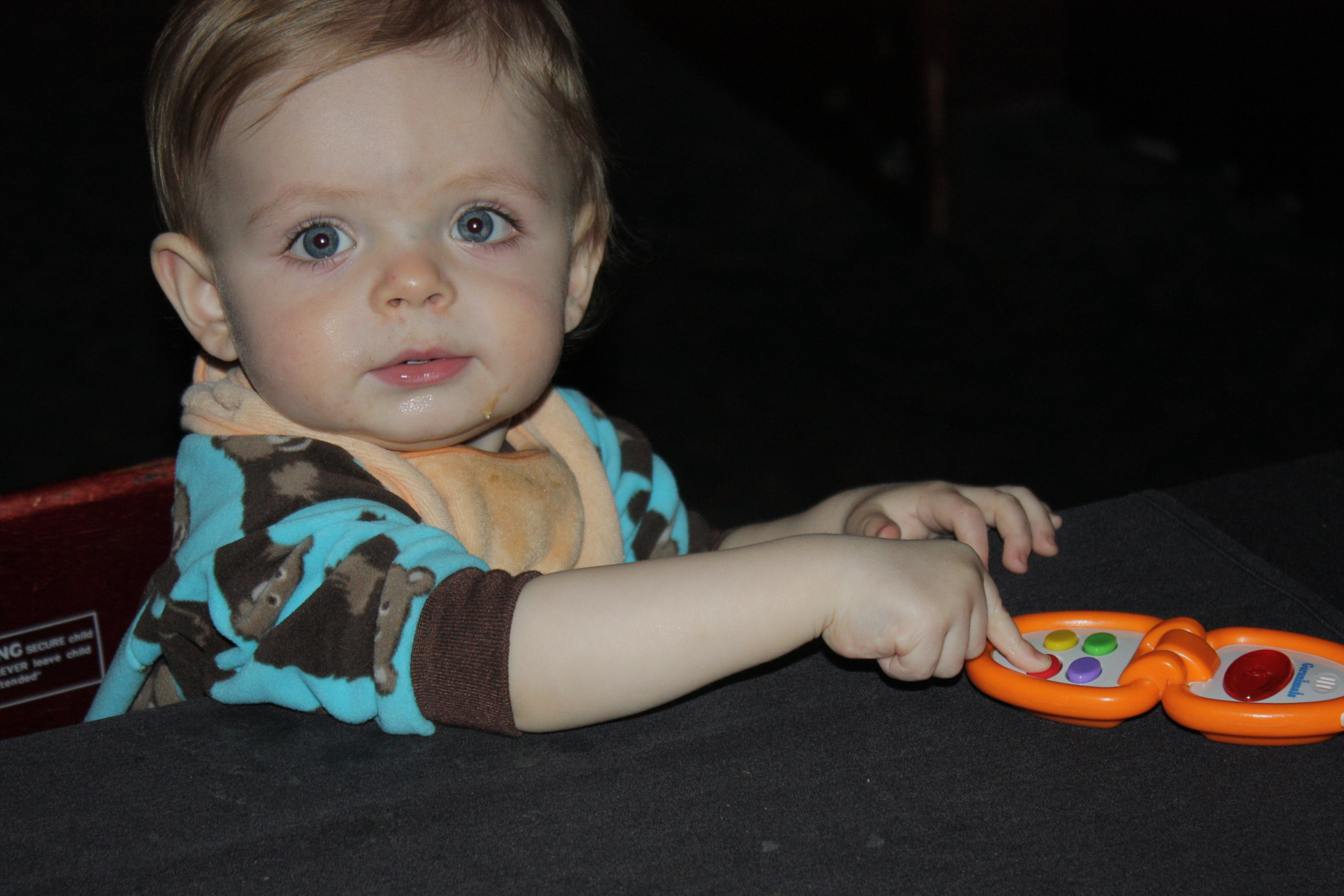 Today, our last day there, we spent walking around the main (and very tacky) street of the Downtown Dells. We took a diversion for a bit and walked the path along the river. You seemed to have a great time pointing out trees, boats and the water. Mommy even got you to say river (which sounded very close to “Rivah”). We ate at Monk’s Pub which had one of the best black bean burgers we ever had. On the ride home, you squirmed and fussed a bit, but entertained us with your new Leap Pad by singing your version of the ABC song which pretty much goes “Ay, Bee, DEEEE! Ay Bee DEEEEEE!”.