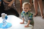 The waterpark was probably your favorite part. We suited you up in swim trunks and a rash guard (a shirt worn to keep surfers from getting board rash), then bundled you in a lifejacket, since some of the pools were too deep for little guys. While it was loud and water came at us from every angle, you seemed to embrace it, sitting in the toddler pool and splashing like mad, chasing squirting streams and rushing face first into what Mommy called “the baby car wash”. You also got to do some time in the bigger pools with us. Daddy even took you in the outside pool where you swam with him under a waterfall.