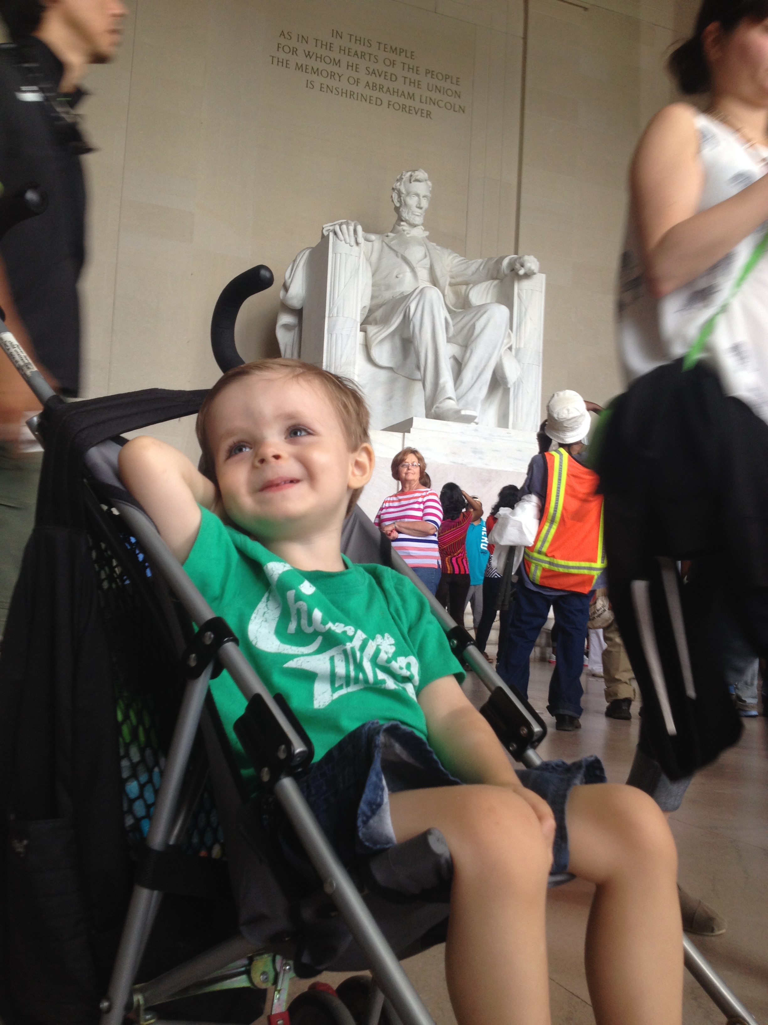 Later, we went to the National Mall, saw the WW II memorial, was a passive participant in the March on Washington 50th Anniversary and went to the Lincoln Memorial. Daddy got a little emotional because you are the same age he WAS when the first march happened in 1963. We talked to you about Martin Luther King and Abraham Lincoln, but I think you were just too hot and tired to appreciate any of it.
