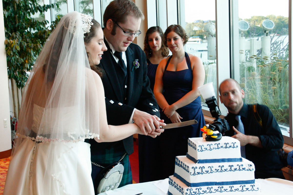 The next day we started very early and visited with Mimi and Doc before the wedding. Daddy had to leave to do some “wedding stuff” with Brandon, but you finally arrived and saw the ceremony in the hot weather but very beautiful location, Monona Terrace. You were a little cranky because of the temperature, but you did enjoy the reception where you ate cake, met LOTS of people and got to dance.
